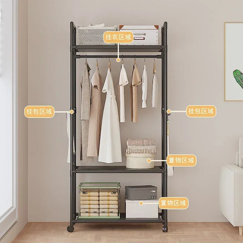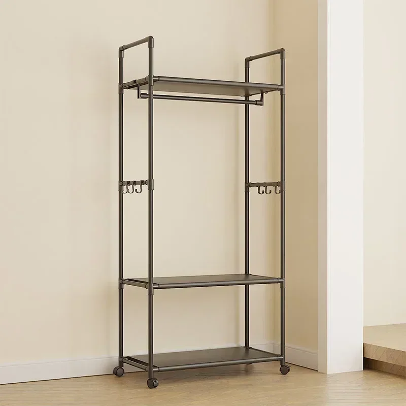 Multi-functional Coat Rack with Hooks Movable Clothes Rack Living Room Clothing Organizer Shelf Multi-Layer Storage Shelf
